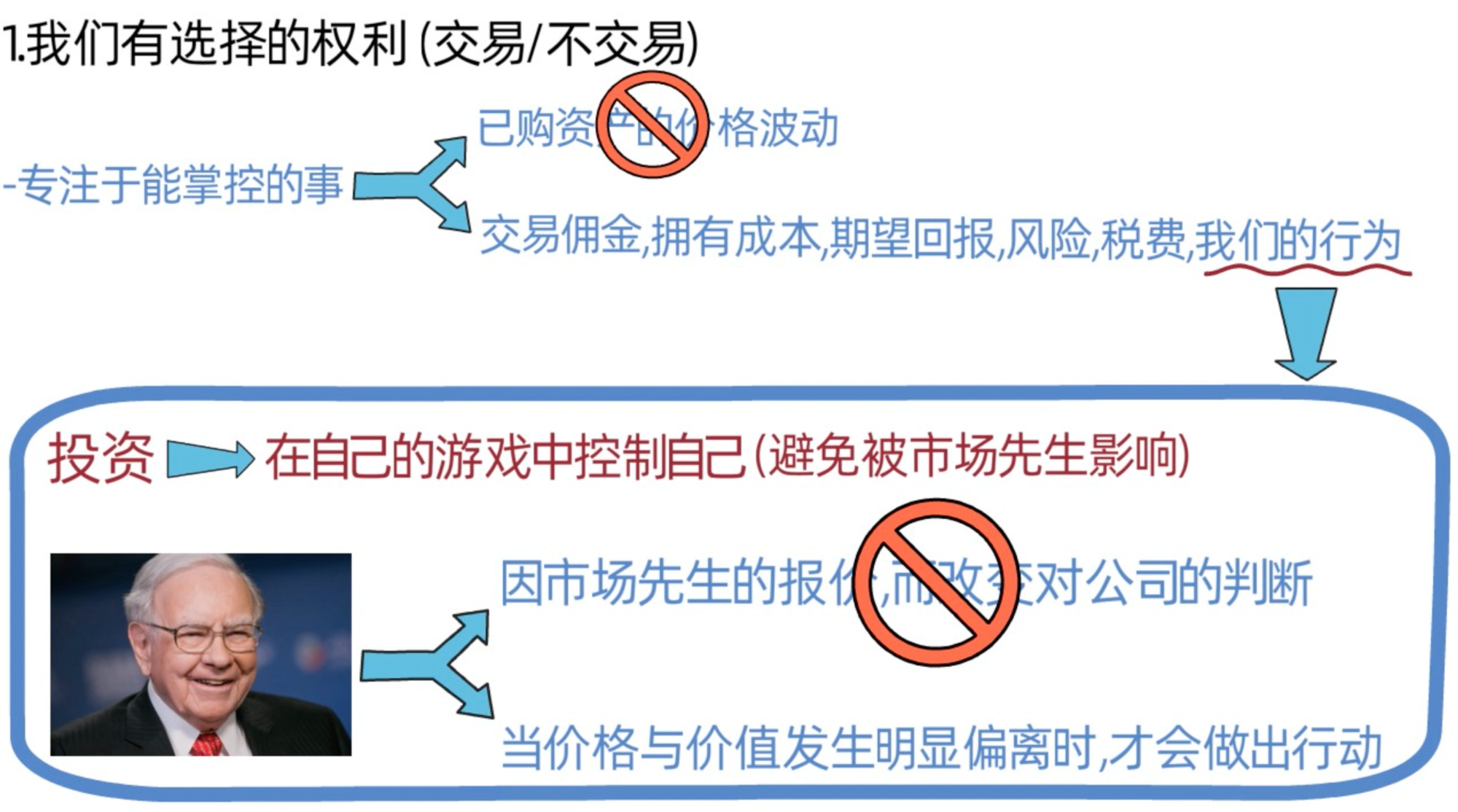 本杰明格雷厄姆认为,聪明的投资者应该专注于自己能控制的事!我们不能控制我们购买资产的价格波动,但我们能控制: