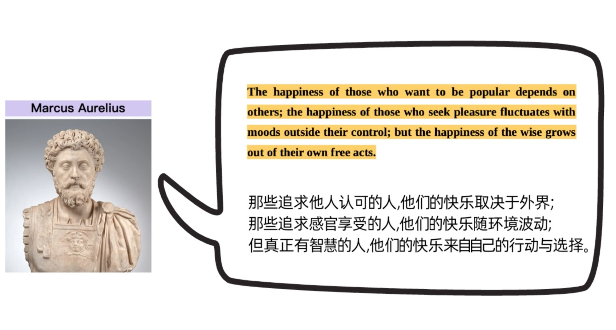 “那些追求他人认可的人,他们的快乐取决于外界;那些追求感官享受的人,他们的快乐随环境波动;但真正有智慧的人,他们的快乐来自自己的行动与选择。”