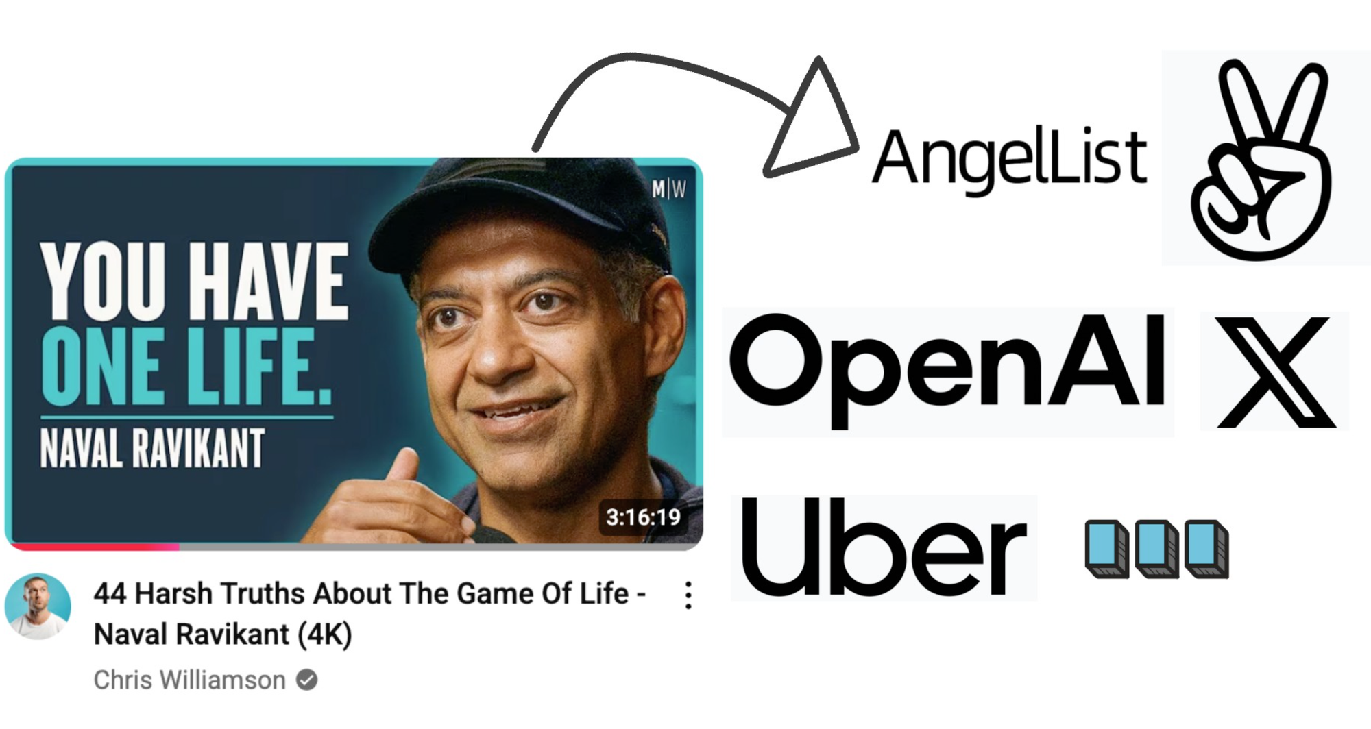 开始之前,先简短介绍下他。Naval ravikant 是硅谷知名天使投资人,企业家和作家,创立了angellist公司,也投资过大家耳熟能详的open AI,Twitter,Uber等行业巨头,是一位白手起家的富豪,同时,他也是《纳瓦尔宝典》这本书的作者(这本书主要讲财富和幸福的,有兴趣的朋友可以去观看我之前的分享)。