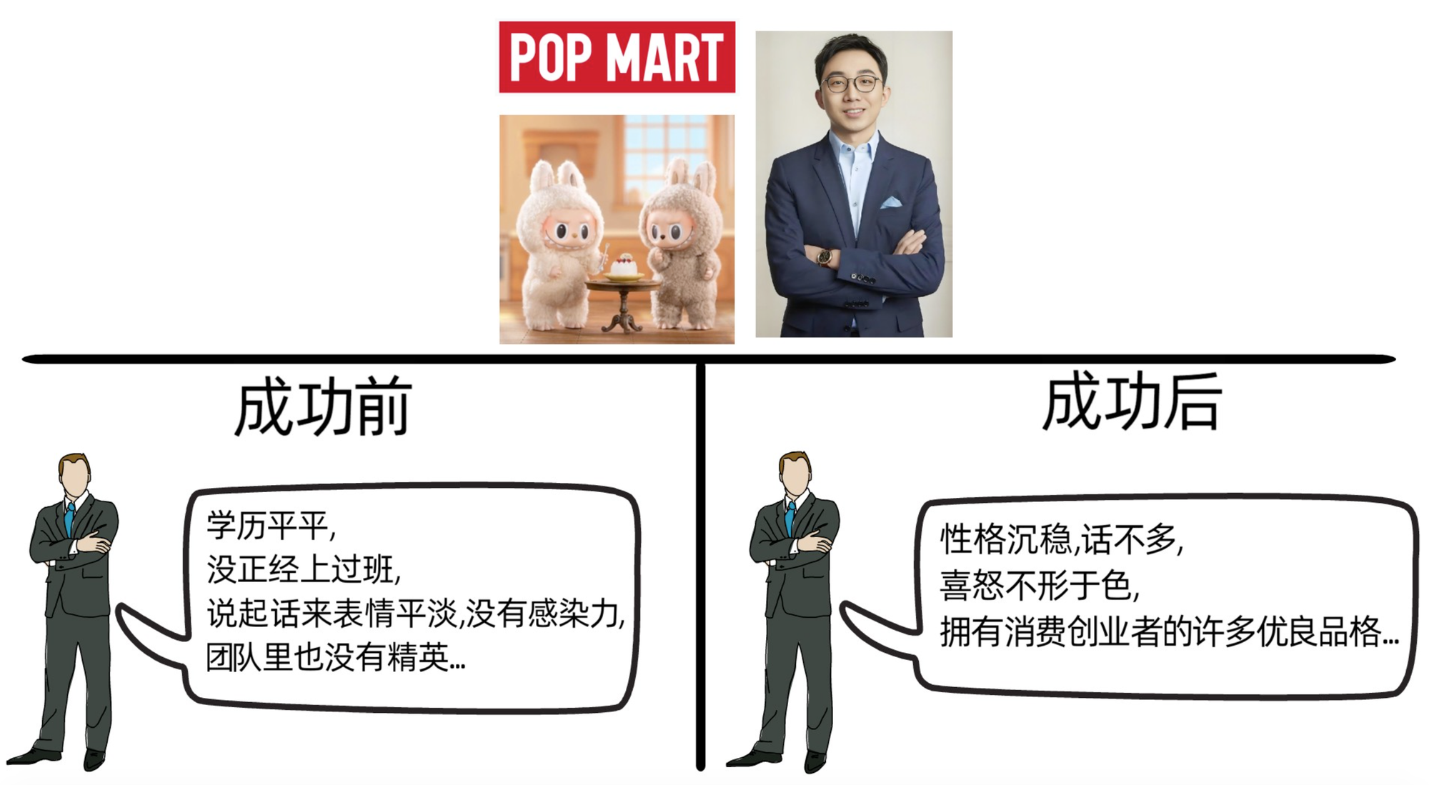 -不仅如此,获得物质成功可以增加我们的吸引力。我突然想起网上对近几年很火的玩偶labubu所属的公司,泡泡玛特创始人王宁成功前后的不同评论:成功前,投资人认为他学历平平,没正经上过班,说起话来表情平静,没感染力,团队也没有精英;成功后,投资人都一致认为他性格沉稳,话不多,喜怒不形于色,拥有消费创业者的许多优良品格。naval和之前分享过的亿万富豪felix dennis都一致表示,物质成功可以大幅增加我们的异性吸引力,特别对于男性来说,物质成功的男性更容易获得更多女性的青睐。