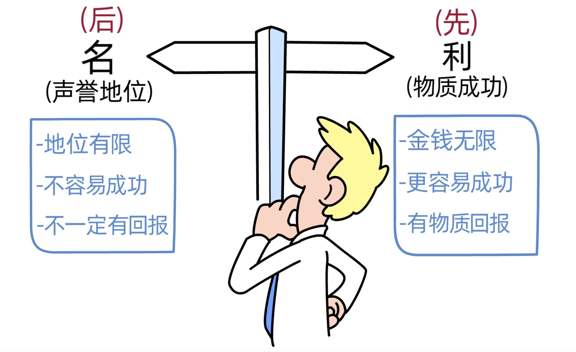 除了物质成功外,很多人还想获得地位成功。naval建议我们,最好先追求财富,再追求名声地位。因为金钱是无限的,地位却有限,相较于地位游戏,金钱游戏更加容易获得成功,而且在金钱游戏中获得成功后是会有物质回报的,但地位却不一定。