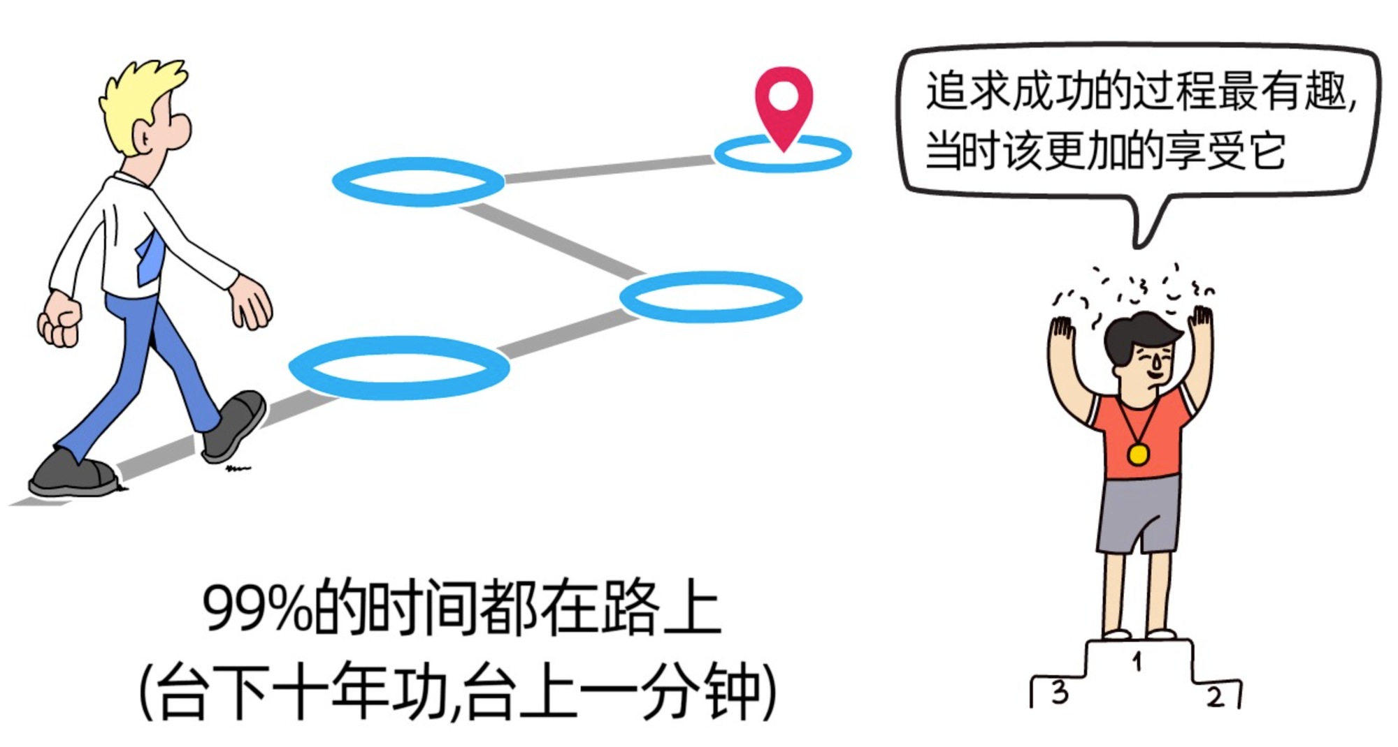 因为我们基本99%的时间都花在过程上面。成功只是最后的那一刹那,过程才是一直长期陪伴着我们的。有句古话说得好,台下十年功,台上一分钟。naval和很多成功人士一样,在回顾过去奋斗历程时,都表示追求成功的过程是最有趣的,感慨当时应该更加的享受它们。
