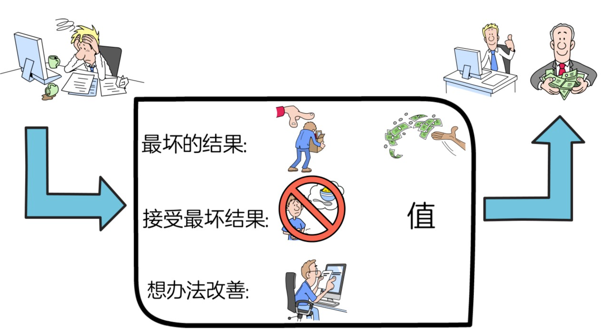 (3)最后一步是,当我们接受最坏的结果后,就要想办法来改善它。
