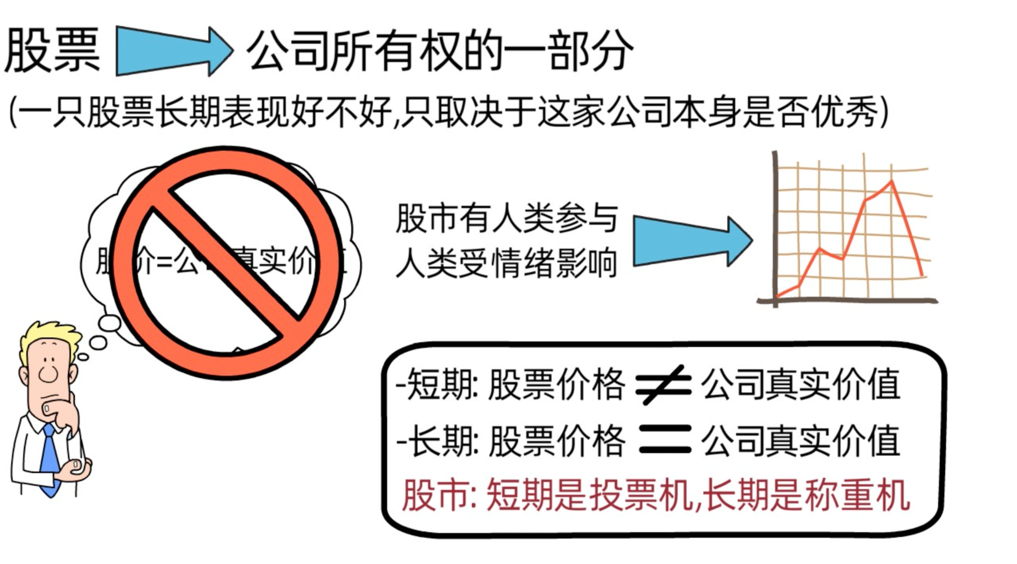 所以,股票价格在短期内,并不等于公司真实价值;但从长期来看,股票价格最终会趋近于公司真实价值。