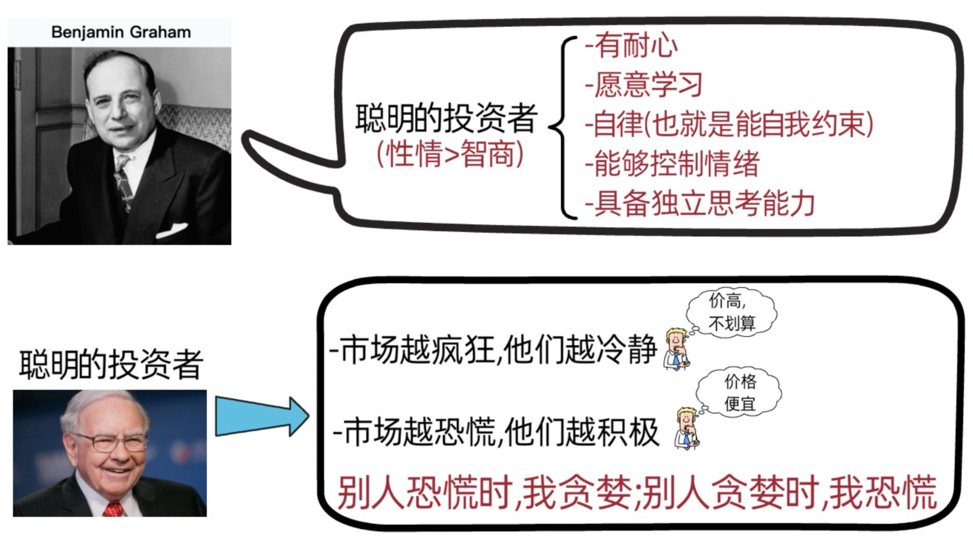 在本杰明格雷厄姆看来,“聪明的投资者”,并不是指智商高的人,而是指有耐心,愿意学习,自律(也就是能自我约束),能够控制情绪,并且具备独立思考能力的人。