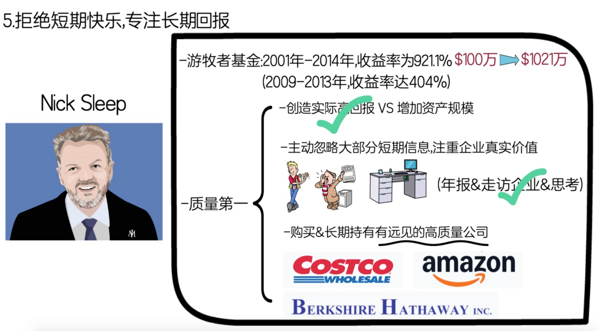 2001年,尼克·斯利普和扎克·扎卡里亚,成立了游牧者基金。两位创始人追求高质量的投资和生活,讲究长期主义、耐心持股、价值投资。2001年至2014年,13年来,游牧者的收益率为921.1%,也就是说,2001年投资100万美元,2014年就可以获得1021万美元。