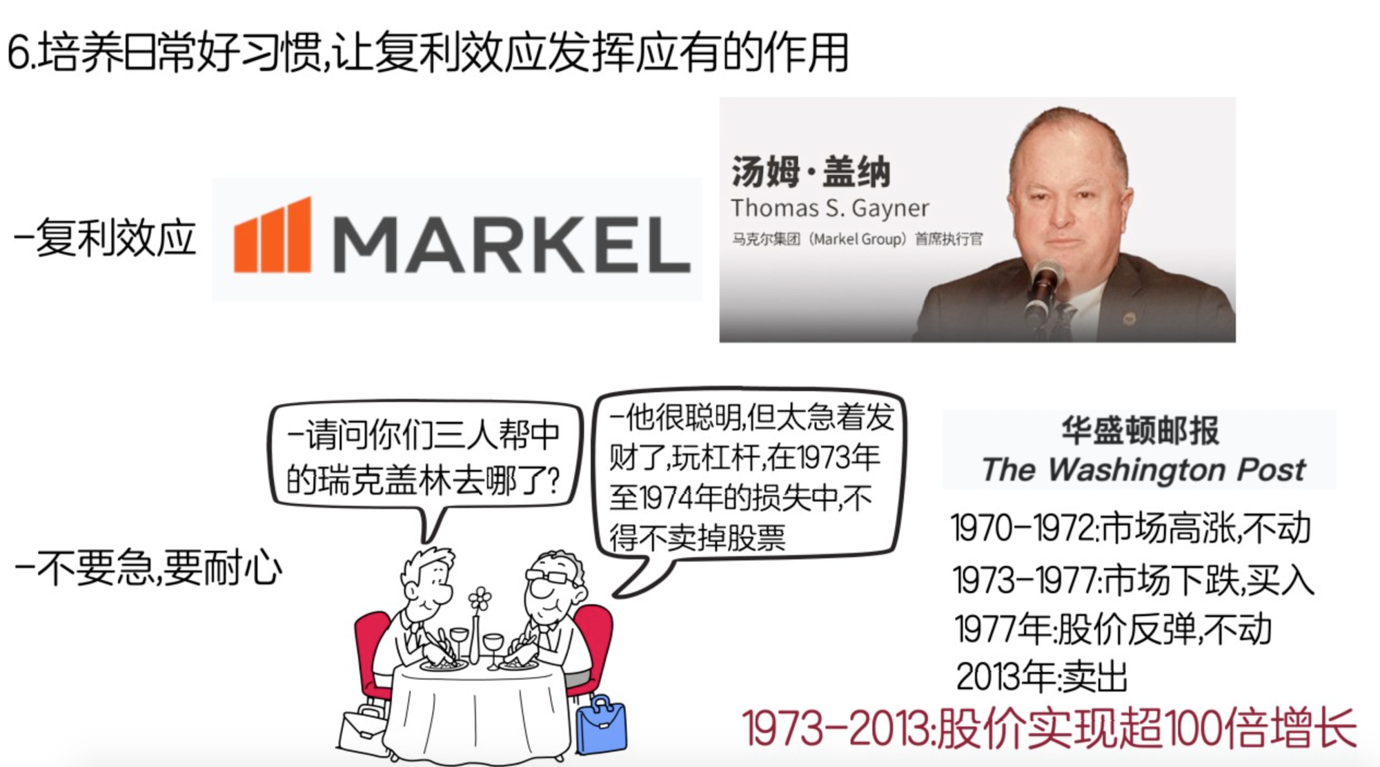 比如,有“小伯克希尔”之称的金融控股公司马克尔公司,自从1986年上市以来,上涨了超过150倍,年化回报达到17%,它的投资组合管理人汤姆·盖纳尔(Tom Gayner)便是复利效应的典范。